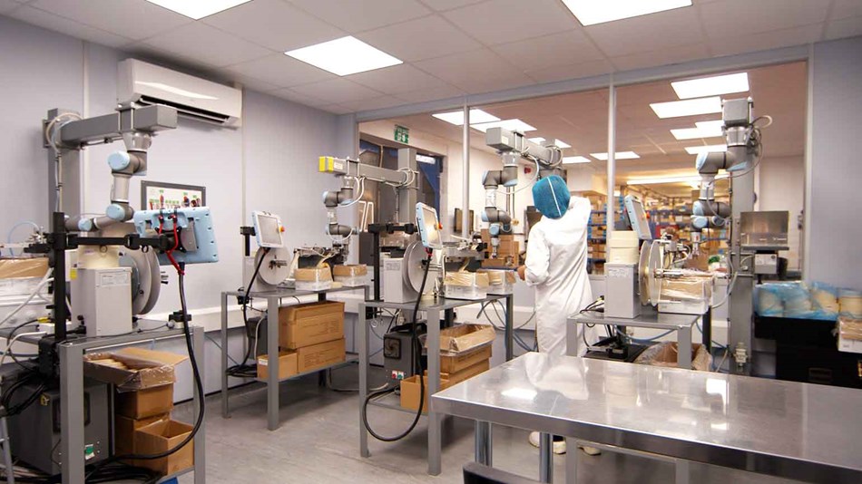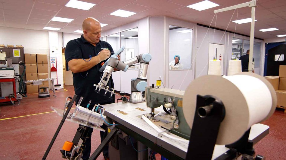 B-Loony Ltd.是一家英國(guó)的中小型制造商,主要生產(chǎn)食品彩旗、旗布和氣球等促銷(xiāo)產(chǎn)品。該公司部署了6臺(tái)UR3協(xié)作式機(jī)器人來(lái)完成縫紉、氣球吹氣和產(chǎn)品組裝等工序,開(kāi)啟自動(dòng)化生產(chǎn)模式后,該公司得以在英國(guó)市場(chǎng)站穩(wěn)腳跟,快速響應(yīng)客戶(hù)需求,在保持自身競(jìng)爭(zhēng)力的同時(shí)進(jìn)一步擴(kuò)大了市場(chǎng)份額。采購(gòu)協(xié)作式機(jī)器人后,B-Loony Ltd.現(xiàn)可年產(chǎn)近200萬(wàn)米的旗布,并將食品彩旗的產(chǎn)能從每年25萬(wàn)面提高到了1,500萬(wàn)面。