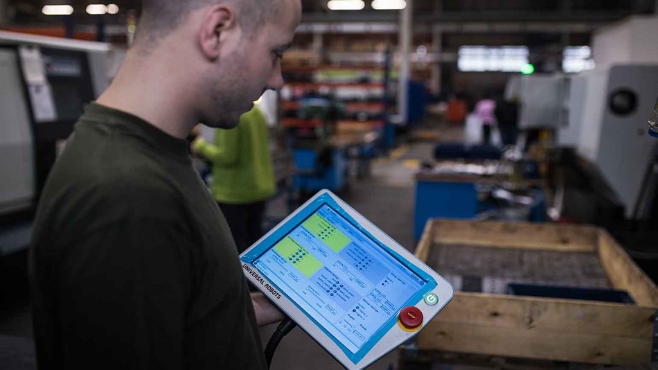 公司員工無需守在數(shù)控機(jī)床旁,也不用執(zhí)行日常的零件上下料工作。他們只需向容器中裝入夠數(shù)小時(shí)使用的零件,然后隨機(jī)檢查任務(wù)狀態(tài)即可。與此同時(shí),工人可以檢查其他機(jī)器的設(shè)置情況,解決可能發(fā)生的問題等。協(xié)作式機(jī)器人無需設(shè)置圍欄,也不需要額外的安全防護(hù)。優(yōu)傲機(jī)器人輕便小巧,移動(dòng)方便,可以應(yīng)業(yè)務(wù)的需要執(zhí)行新的任務(wù)。?