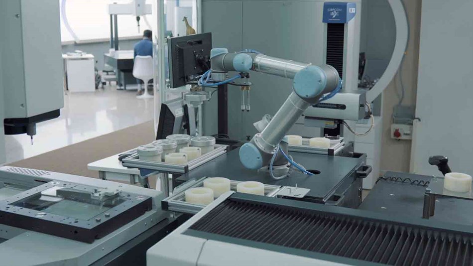 作為Carl Zeiss India (Bangalore) Pvt. Ltd.分部,蔡司工業(yè)測量技術(shù)中心努力解決因手動進(jìn)料系統(tǒng)改變產(chǎn)線造成的問題,安裝了一臺UR5協(xié)作式機(jī)器人后將企業(yè)的機(jī)加工能力提高了90%以上,從而實(shí)現(xiàn)全天候制造?,F(xiàn)在一臺協(xié)作式機(jī)器人可在同一周期內(nèi)管理三臺測量機(jī)。