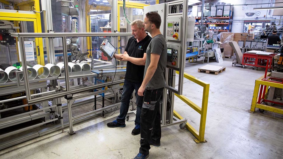 由于生產(chǎn)梯子的工廠空間狹小,海格爾工廠的生產(chǎn)經(jīng)理Meik Schmidt和工藝經(jīng)理Heinz Hild正在尋找一種緊湊的自動化解決方案,以便輕松地集成到生產(chǎn)線中。兩人從展銷會和雜志中了解到協(xié)作式機器人技術(shù),通過這種技術(shù),人與機器可以安全共存。