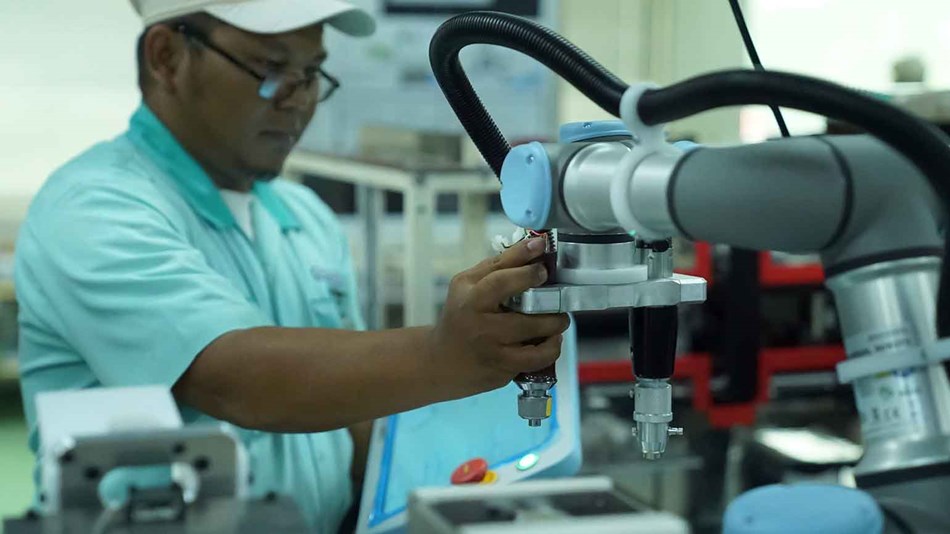 雖然 Agustinus Simanullang 也是初次接觸機(jī)器人,但在他的領(lǐng)導(dǎo)下,團(tuán)隊(duì)只花了幾個(gè)月的時(shí)間,就成功地將優(yōu)傲協(xié)作式機(jī)器人安裝到了生產(chǎn)線上。
