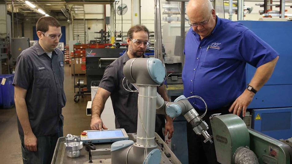 Task Force Tips 生產(chǎn)主管 Cory Mack 表示,使用優(yōu)傲機(jī)器人后,人員需求從 7 人減少到 3 人: