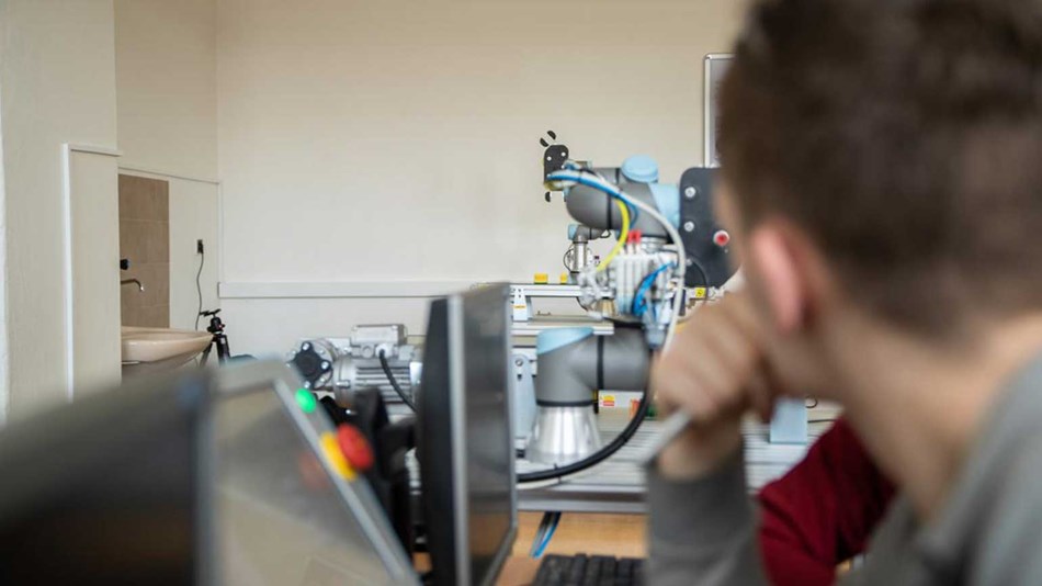 隨著各行各業(yè)的快速發(fā)展變化,要求求職者具備新的能力和知識(shí)。為了跟上行業(yè)的發(fā)展,專業(yè)職業(yè)學(xué)校需要相應(yīng)地調(diào)整其學(xué)習(xí)計(jì)劃,為學(xué)生的未來(lái)做好相應(yīng)的準(zhǔn)備?!霸谖覀儗W(xué)校,我們相信未來(lái)屬于協(xié)作式機(jī)器人?!薄拔覀兿朐趯W(xué)生找到工作之前給他們一個(gè)使用這些系統(tǒng)的機(jī)會(huì),“SP?EI Ostrava的老師Eduard Polák說(shuō)?!拔覀兘诘难芯勘砻?,學(xué)生們對(duì)機(jī)器人抱有濃厚的興趣。我們現(xiàn)在已經(jīng)能夠開(kāi)設(shè)兩門(mén)專業(yè)課程,重點(diǎn)介紹協(xié)作式機(jī)器人,”S?PU Opava的校長(zhǎng)Vítězslav Dole?í說(shuō)。