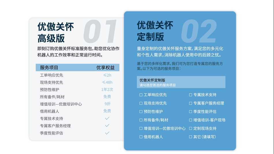 該服務旨在讓您以更具競爭力的本土化價格享受全球化的高品質(zhì)服務,使您安心踏上協(xié)作自動化之旅,并助您充分發(fā)揮機器人的全部潛能。