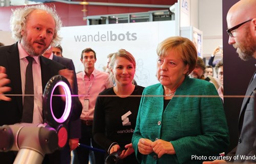 創(chuàng)新 06. 九月 2018 / Universal Robots 漢諾威工業(yè)展精華:認(rèn)識(shí)創(chuàng)新的人機(jī)協(xié)作 德國(guó)總理 Angela Merkel 及墨西哥總統(tǒng)Pe?a Nieto 出席全球規(guī)模頗大工業(yè)展- 漢諾威工業(yè)展參觀攤位,象征他們對(duì)當(dāng)今主流趨勢(shì)的認(rèn)同,而當(dāng)他們要和機(jī)器人打招呼時(shí),都選擇較輕松的擊拳方式,而非正式的握手,代表著人和數(shù)位化、機(jī)器人及機(jī)器學(xué)習(xí)間的關(guān)系呈現(xiàn)更加緩和而自然的走向。